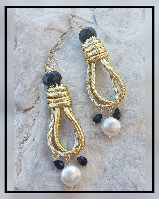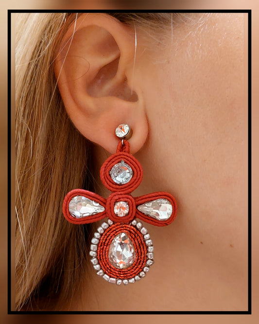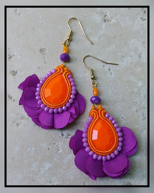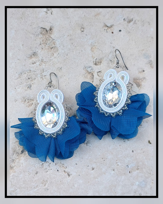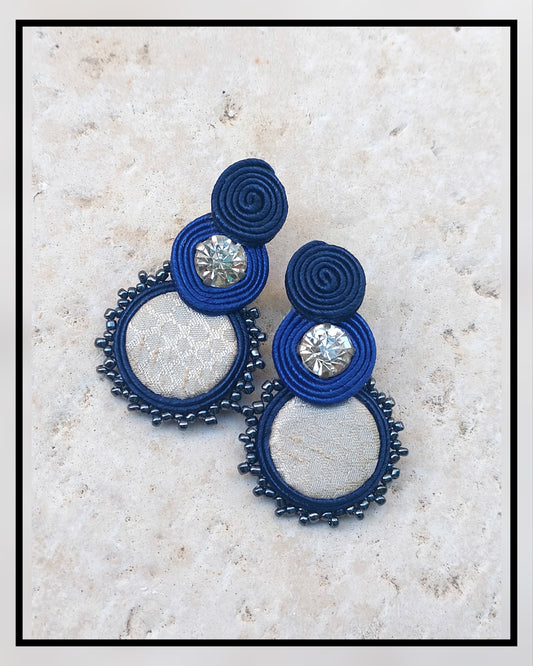 Orecchini realizzati principalmente da tessuto cordini e piattina soutaches con la caratteristica di essere molto leggeri