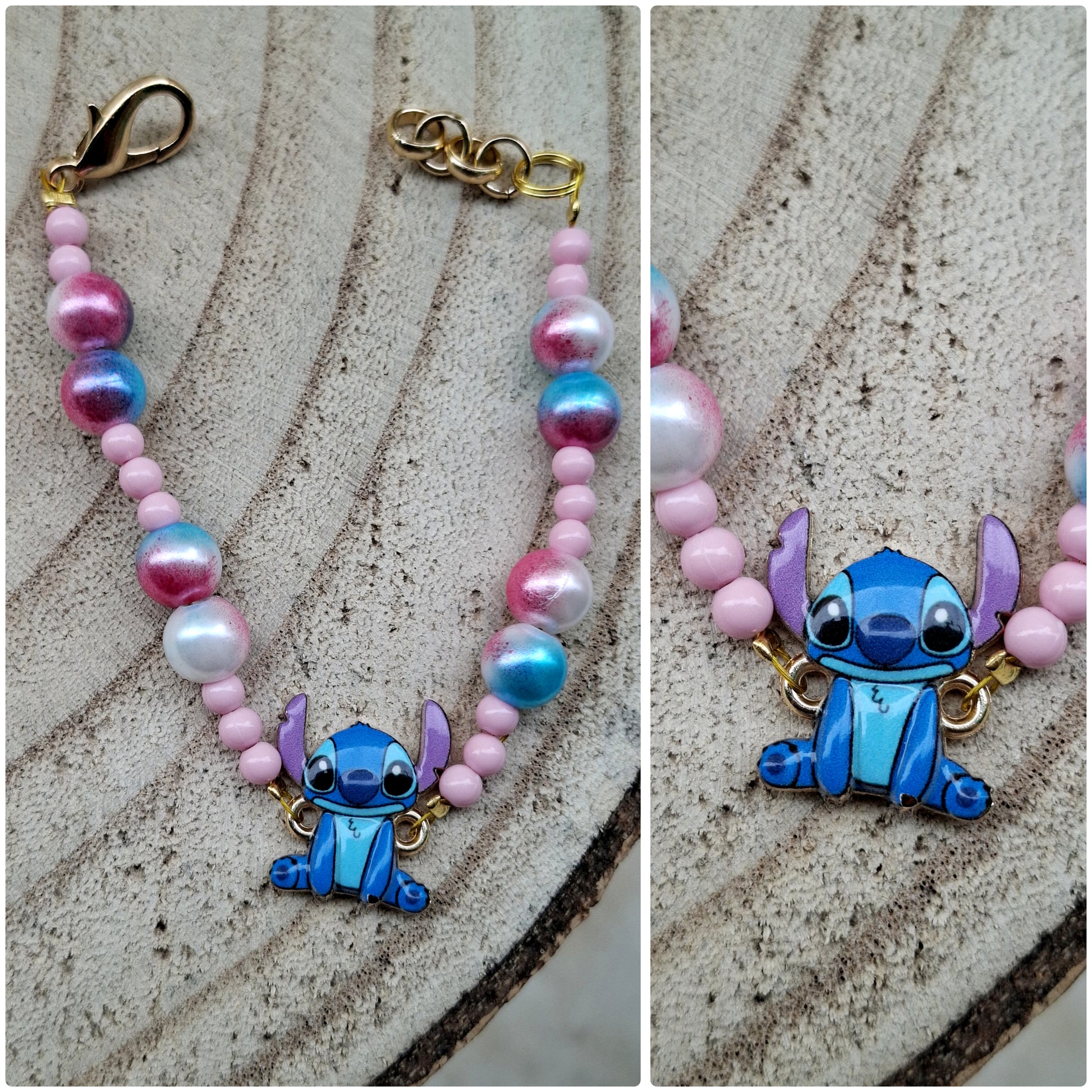 Bracciale con chiusura regolabile in ottone con perline sintetiche e charms