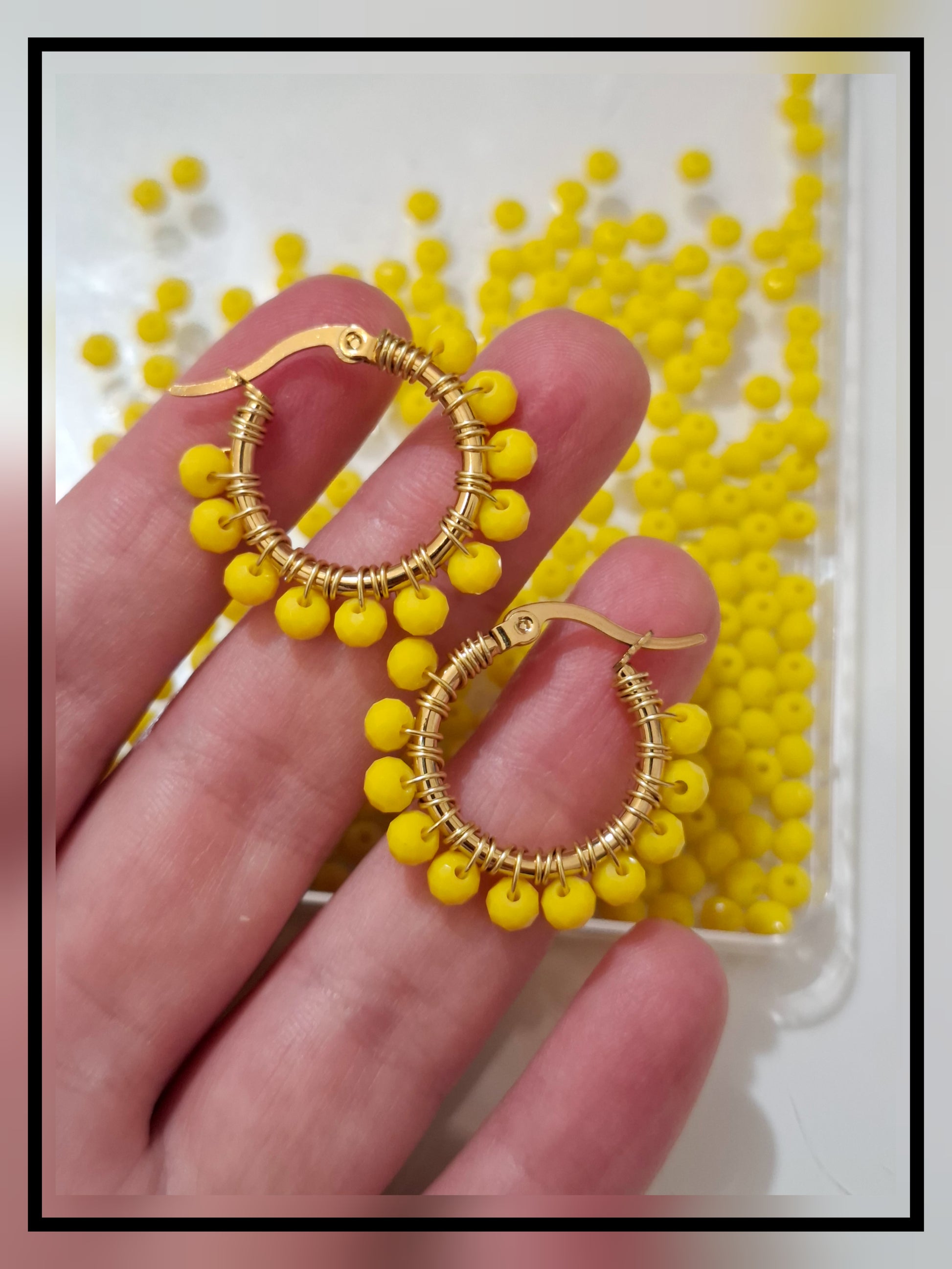 Orecchini cerchio realizzati a mano in acciao inox anallergico impreziosito da pietre cristallo