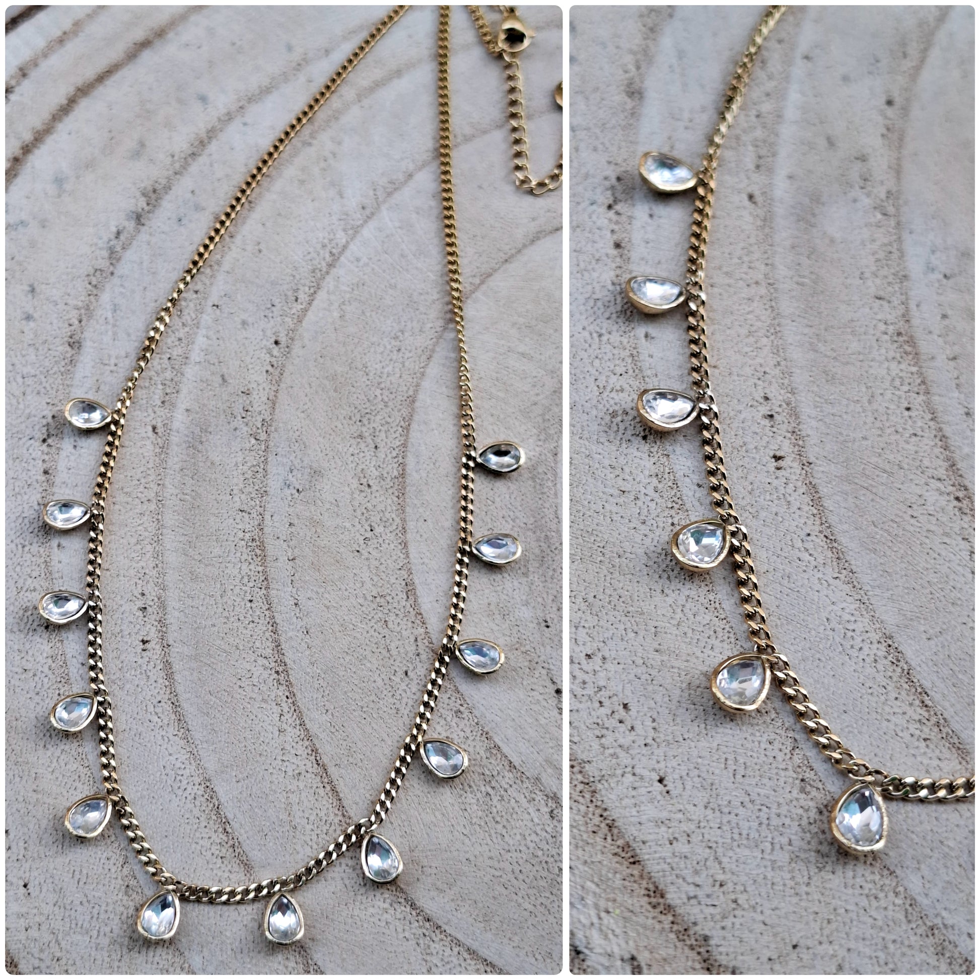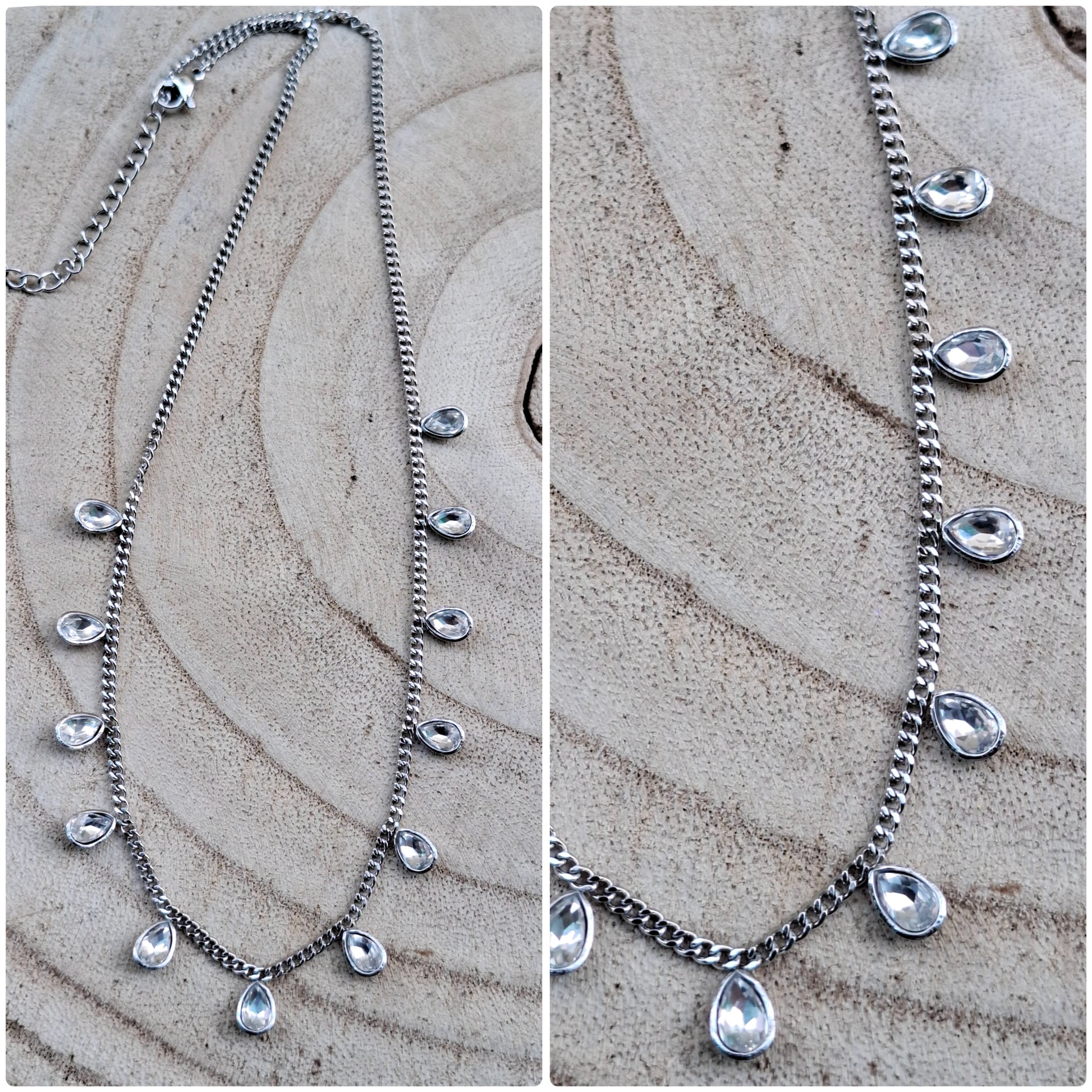 Collana girocollo in acciao con pietre a goccia pendenti