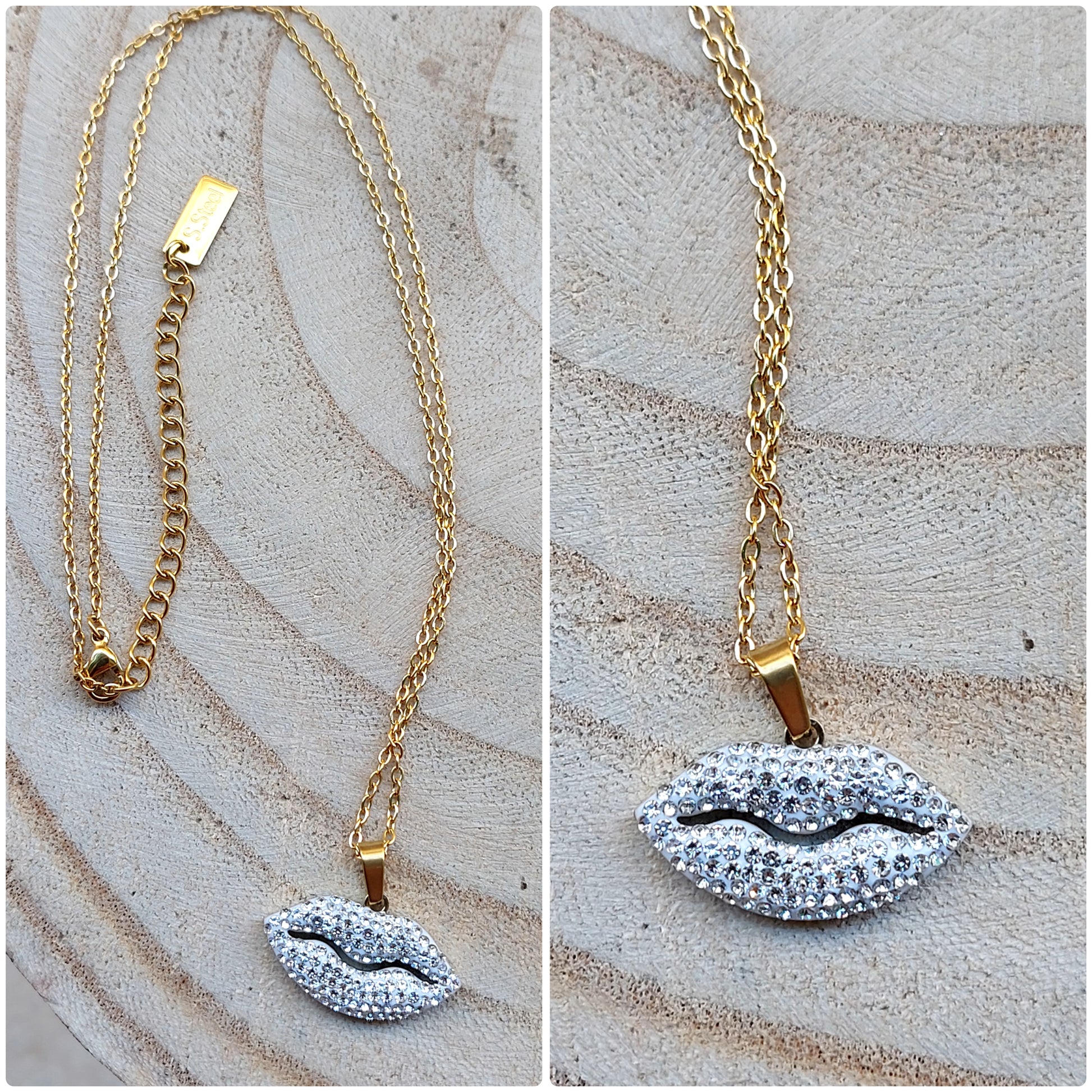 Collana in acciao con ciondolo in acciao e strass