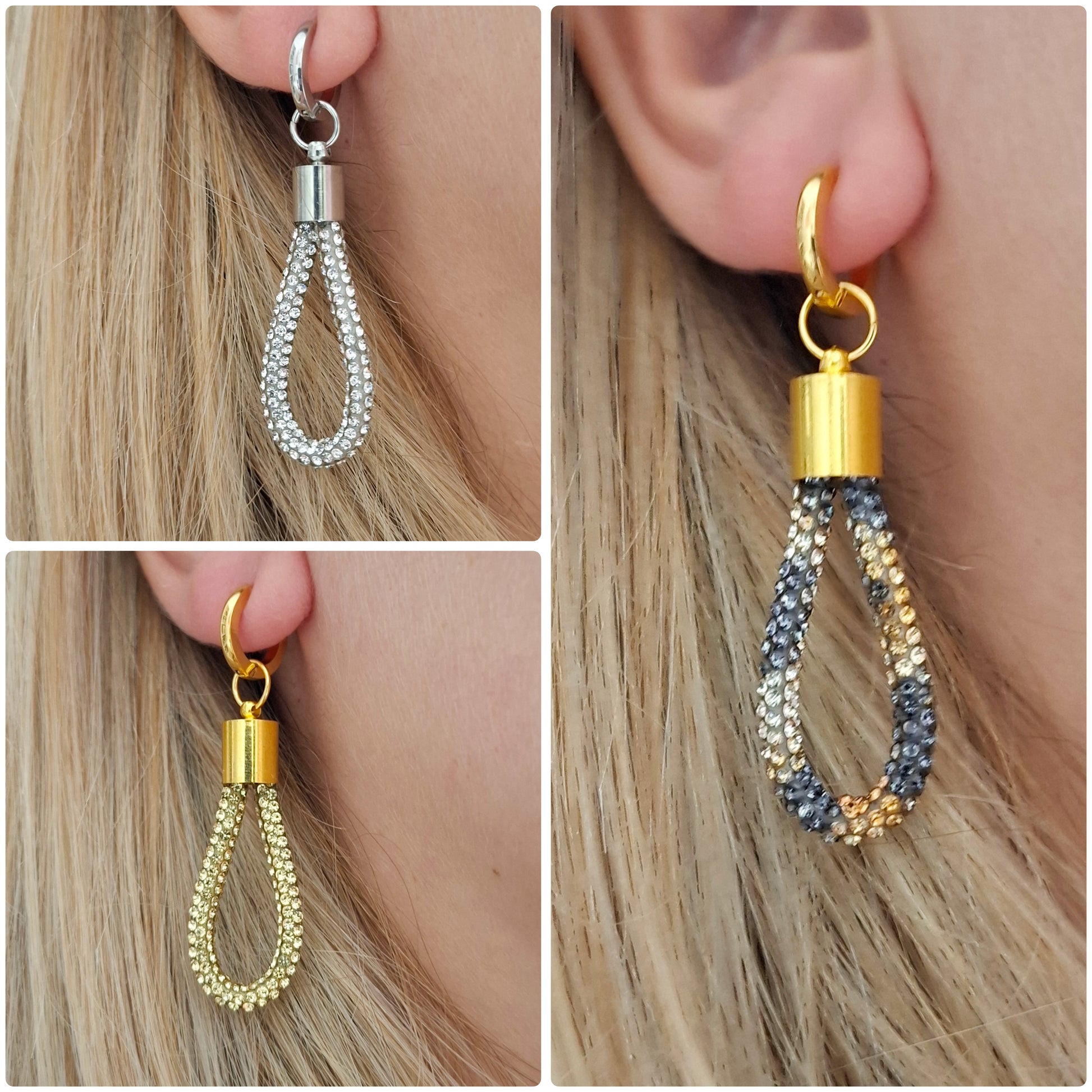 Cerchietti 8 mm in acciao con pendente in cordino strass