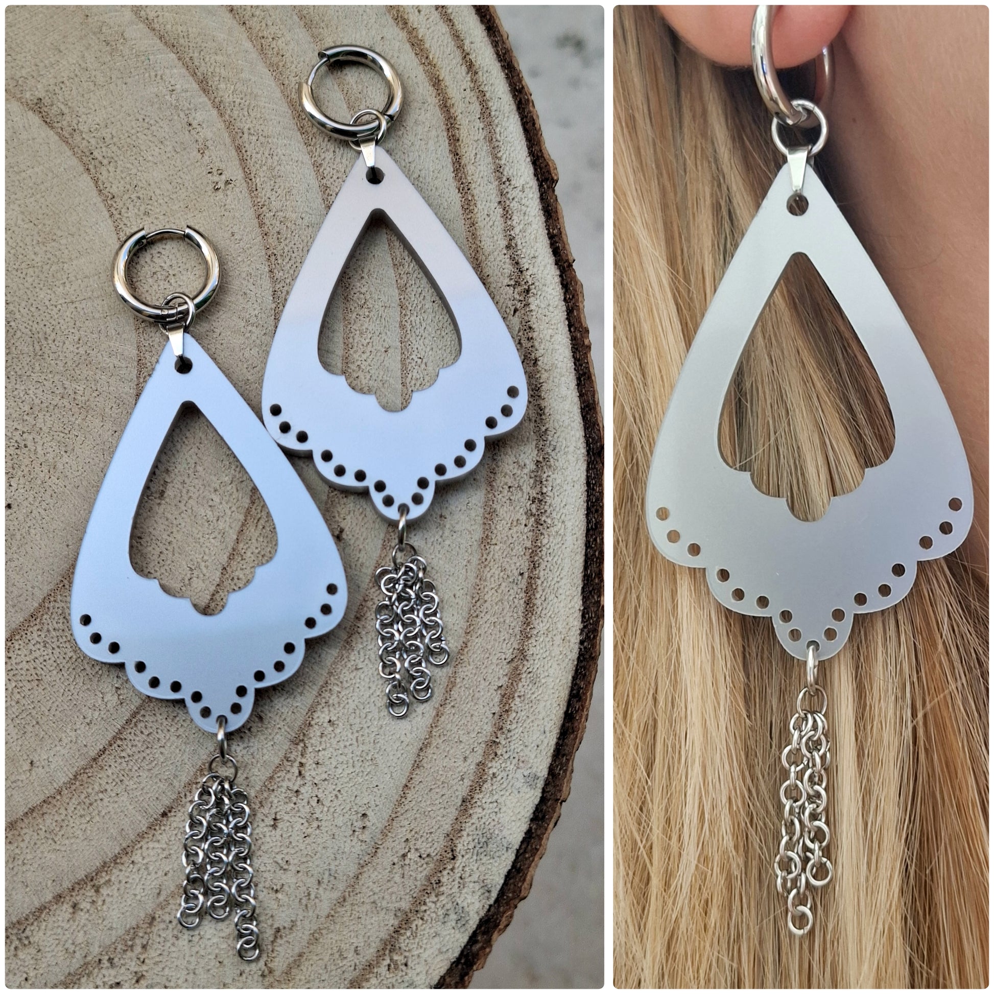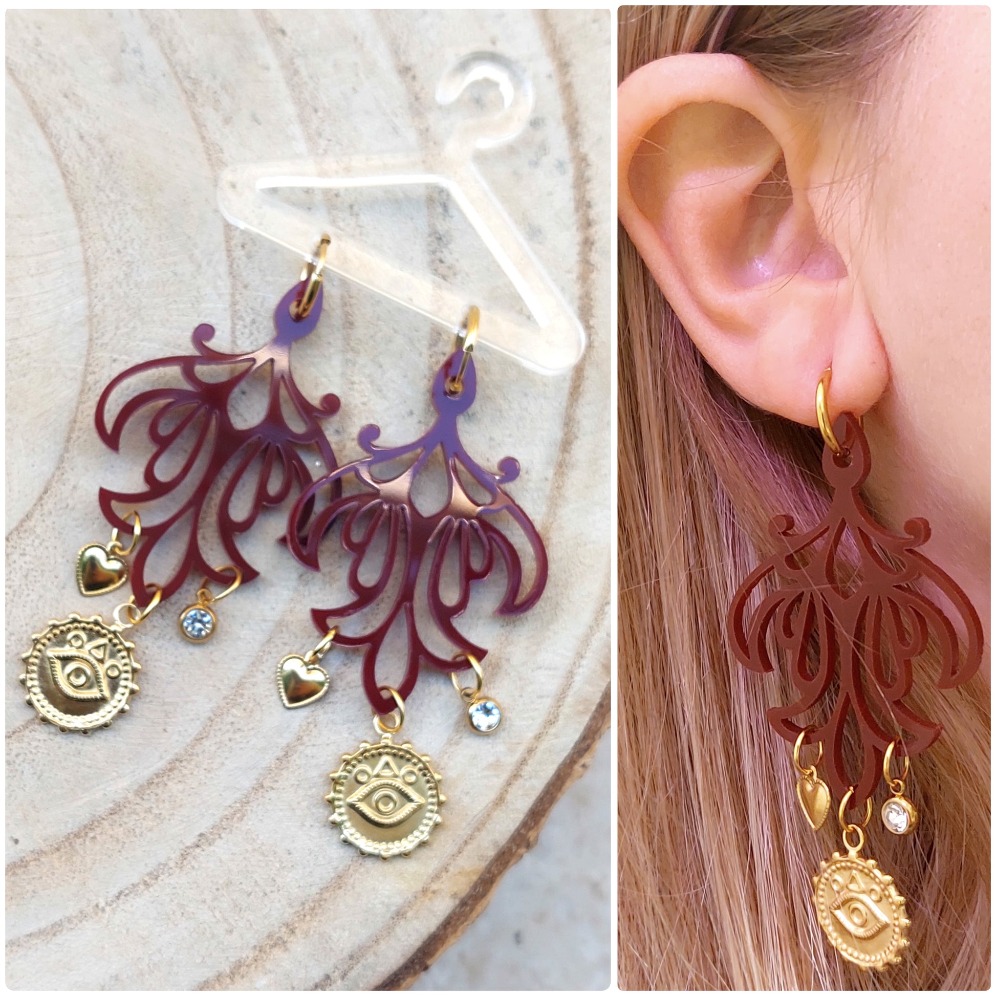 Orecchini pendenti con cerchio 10 mm in acciao base in plexiglass con ciondolini