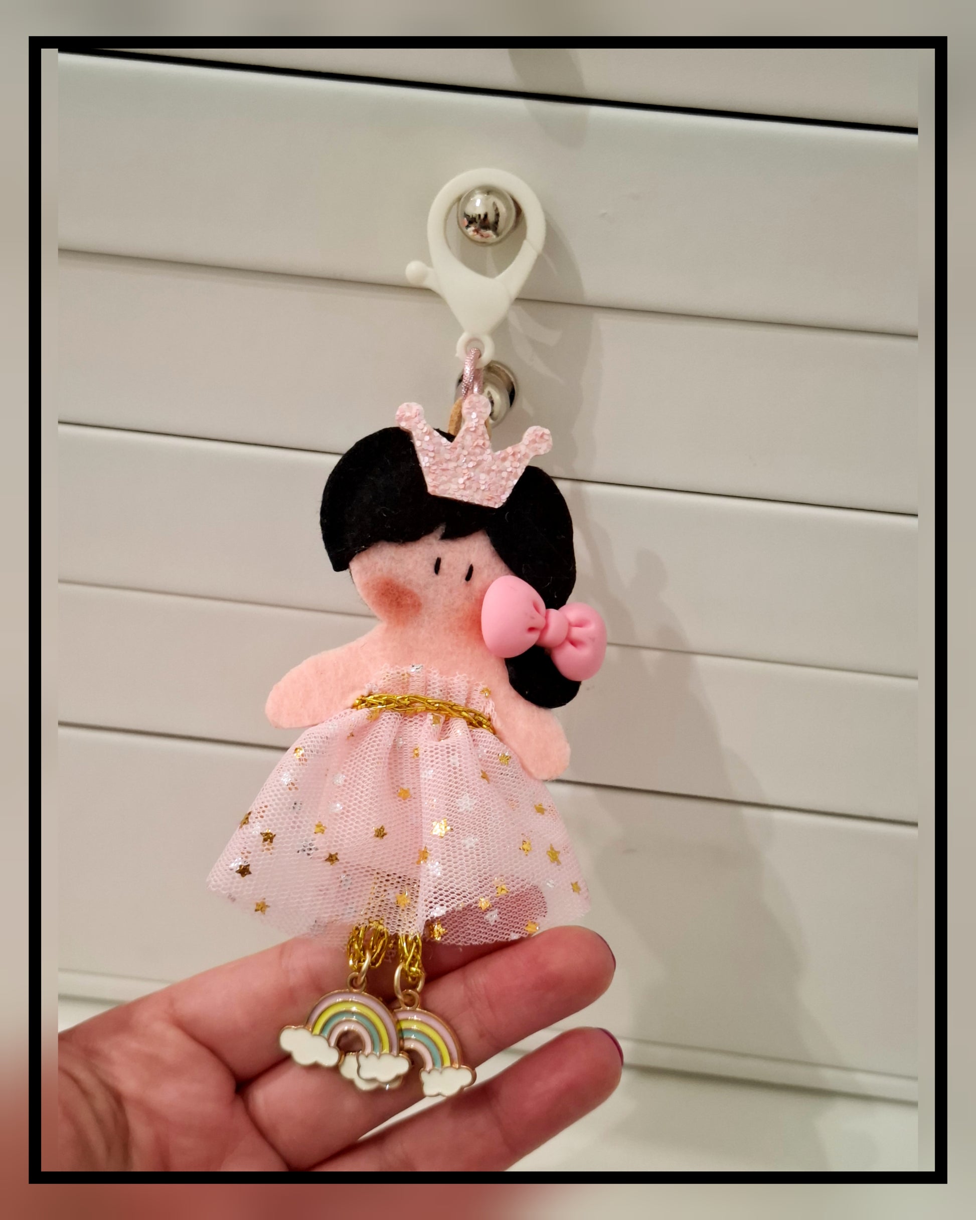 Portachiave in pannolenci con applicazione in metallo e resina