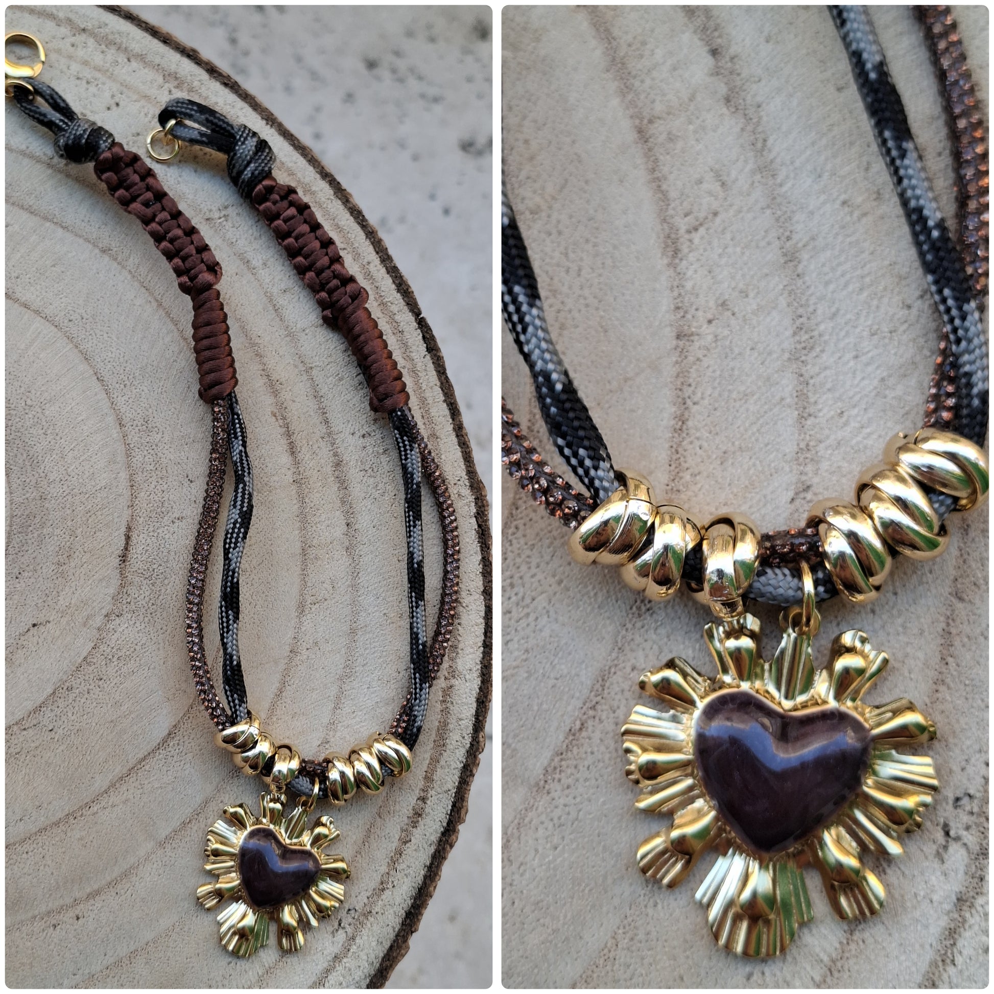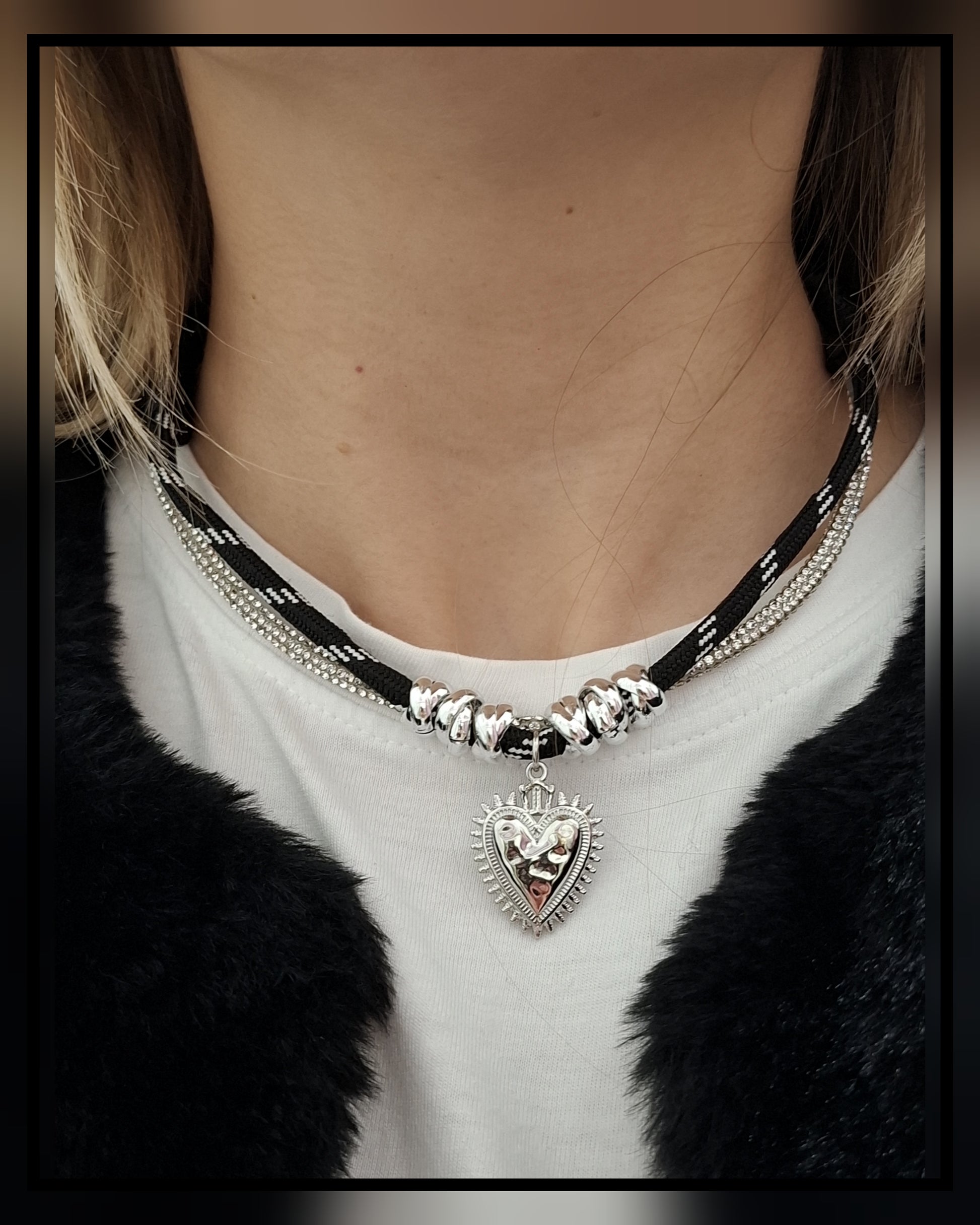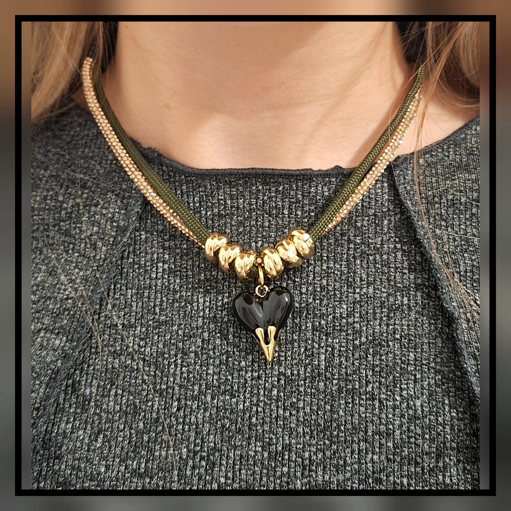 Collana 42 cm con 2 cordini e corda di topo componenti in acciao e alluminio
