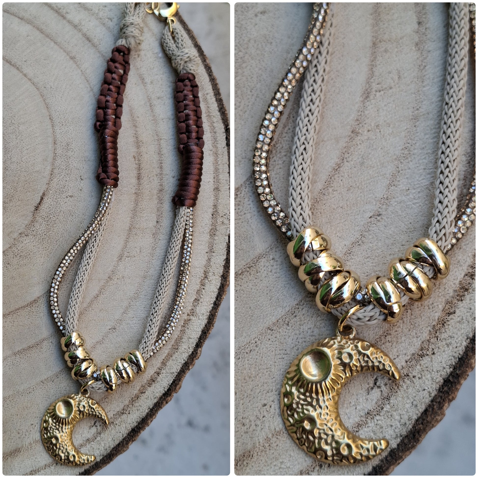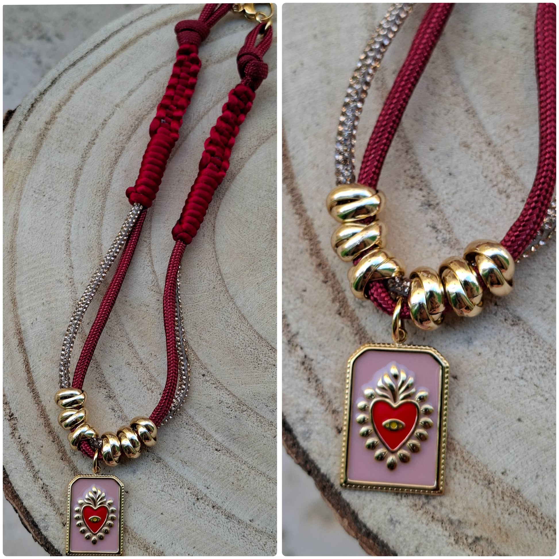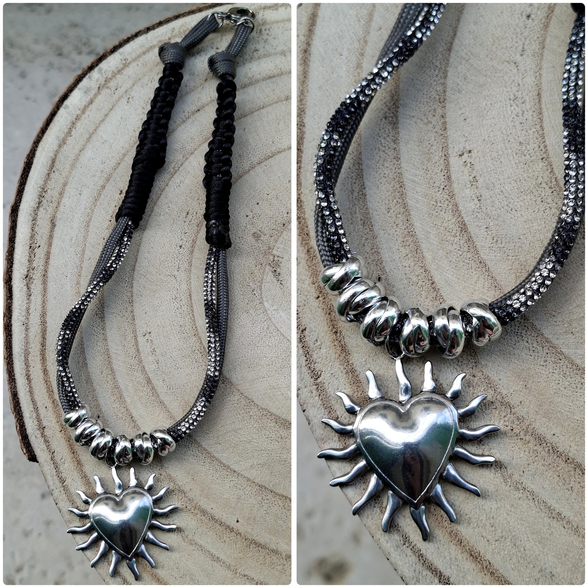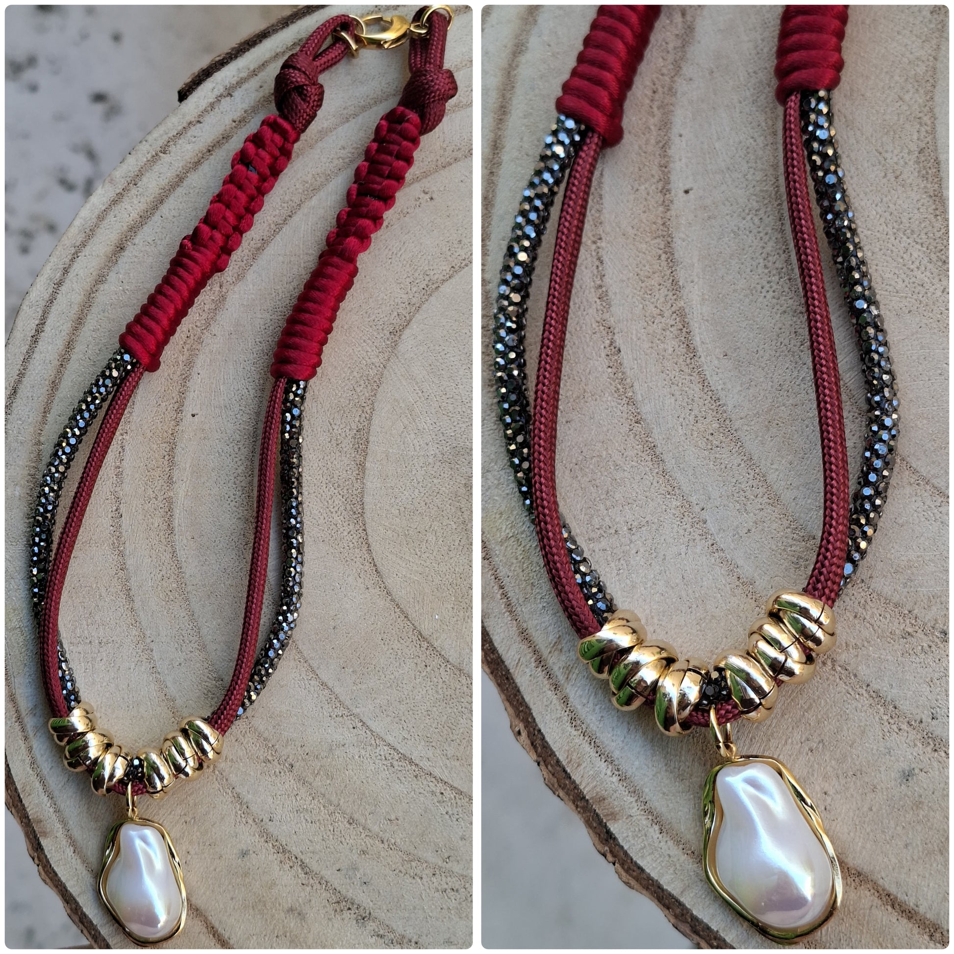 Collana 42 cm con 2 cordini e corda di topo componenti in acciao e alluminio